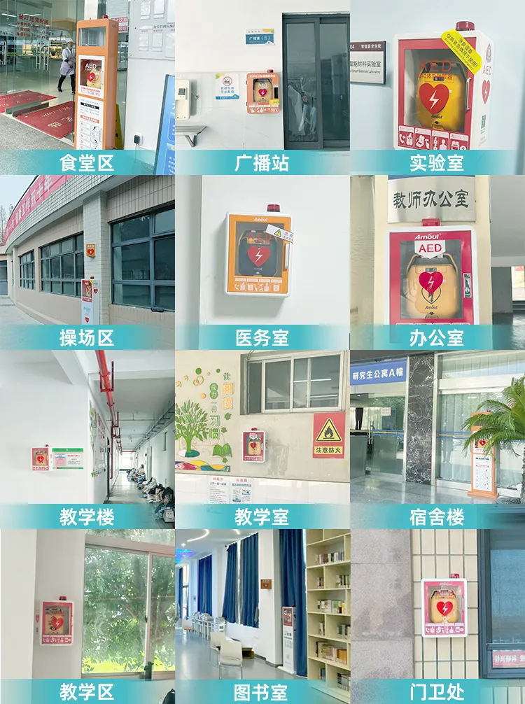 安保醫(yī)療積極響應(yīng)教育部急救教育試點工作要求,根據(jù)《公共場所自動體外除顫器配置指南》,兼顧科學性與實用性,在各學段校園進行AED全場景配置。