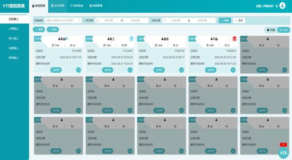 系統(tǒng)支持動態(tài)節(jié)點自動提醒,風險監(jiān)測和評估預警,同時提供質(zhì)控指標統(tǒng)計的評估量表,并自動識別評分等級。支持的量表包括:Caprini評分表、Padua評分表、khorana評分表、孕產(chǎn)婦產(chǎn)前產(chǎn)后危險因素評分表、出血風險評分表和Well評分表等,可精準的卡控并及時提醒醫(yī)護人員,提升住院患者VTE風險的評估率,保障患者生命安全。