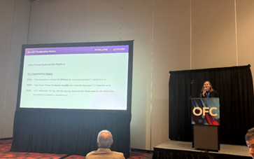在 OFC 2025 的最后一場會議上Janina Rautert 博士登臺介紹了我們在量子點激光技術方面的最新進展——這一次再次被選為享有盛譽的截止日期后論文會議。